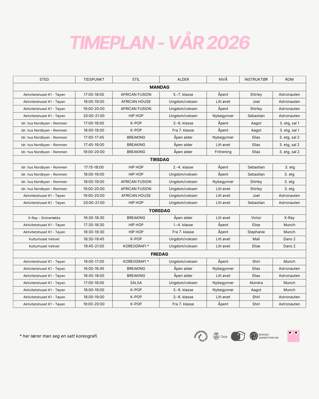 Vi gjør oppmerksom på at foresatte selv har ansvar for barna som deltar på kurs. Våre instruktører står for danseundervisning og om noe skulle skje bør foresatte være tilgjengelig